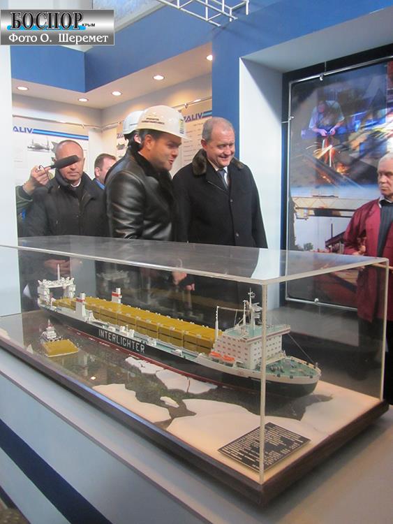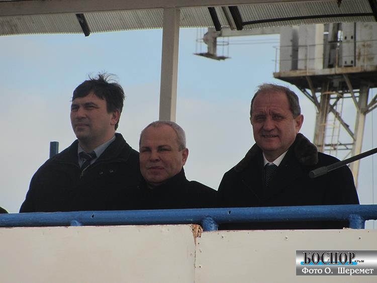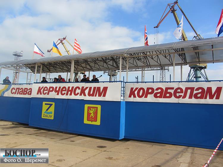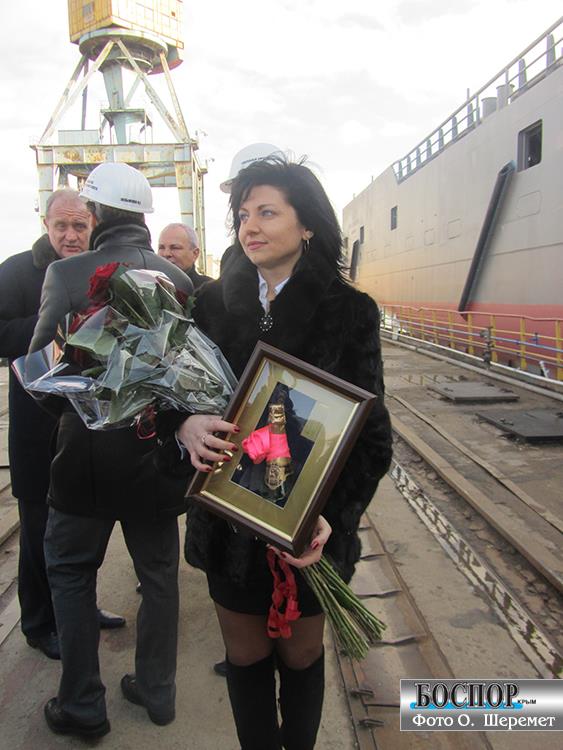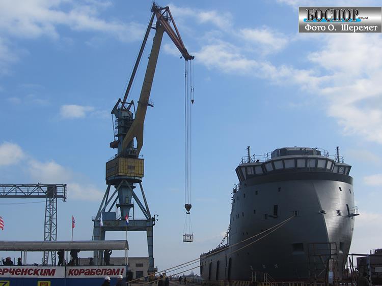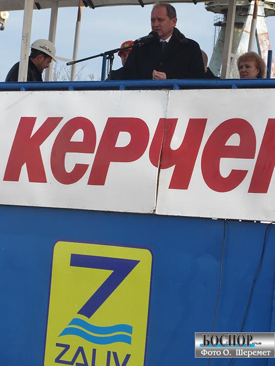 Церемония вывода из дока завода «Залив» двух корпусов судов обслуживания буровых платформ с участием председетеля Совмина Крыма Анатолия Могилева 24 января 2013 года
