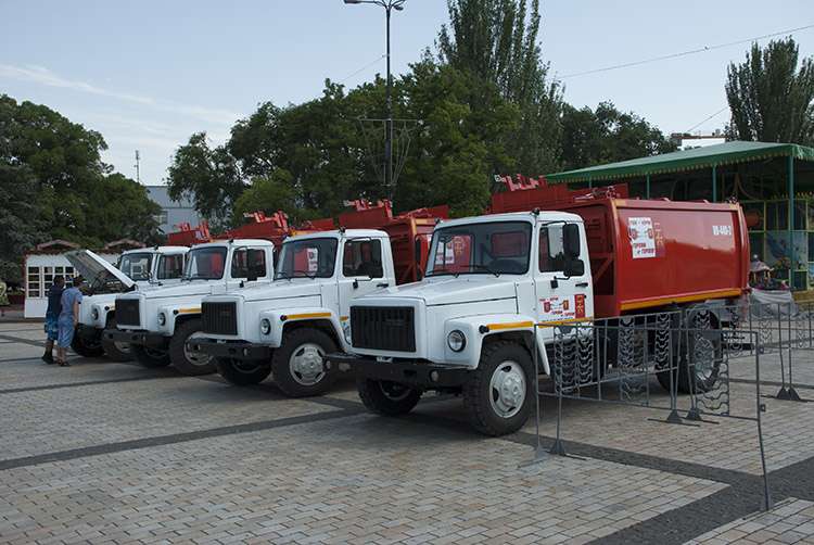 Торжественная передача керченскому коммунальному хозяйству 4 новых контейнеровозоы и 4 многофункциональных тракторов с навесным оборудованием от Тулы — города-побратима Керчи. Фото Юрия Иньшина.