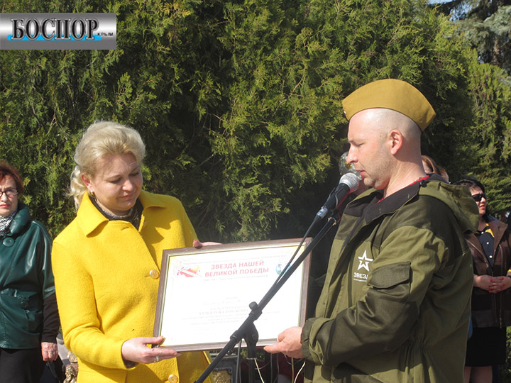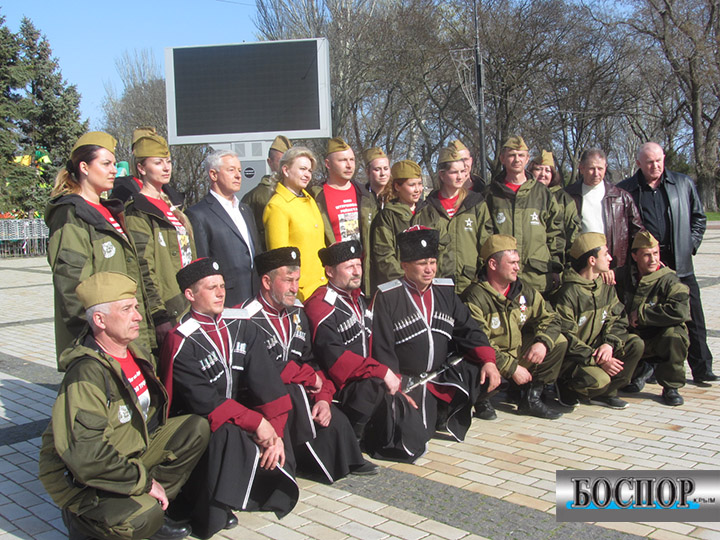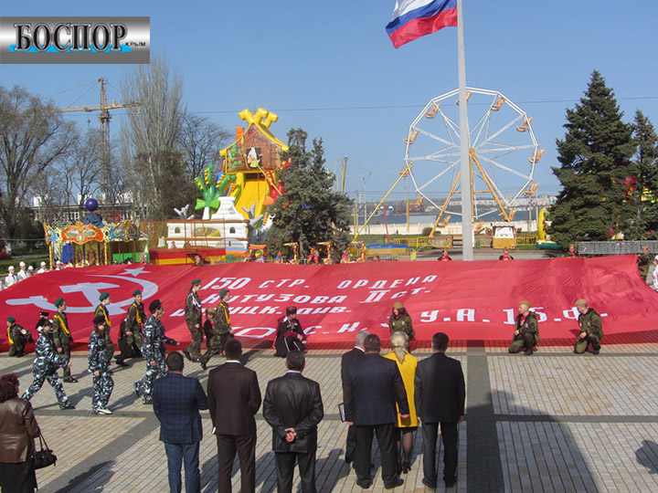 Участники автопробега «Звезда нашей Великой Победы» привезли в Керчь копию Знамени Победы. Апрель, 2016 г. Фото Юлии Юрченко.