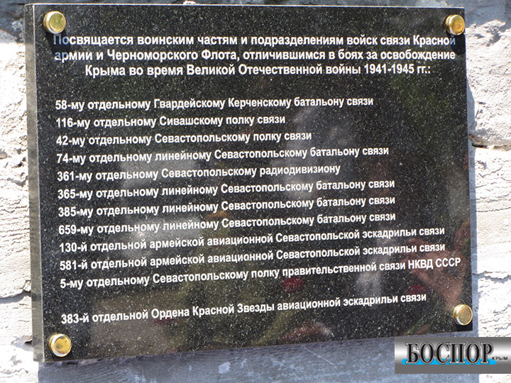 В преддверии Дня Победы на территории крепости Керчь состоялось торжественное открытие мемориальной доски, посвященной воинским частям и подразделениям войск связи Красной Армии и Черноморского Флота, сражавшихся за освобождение Крыма в годы Великой Отече