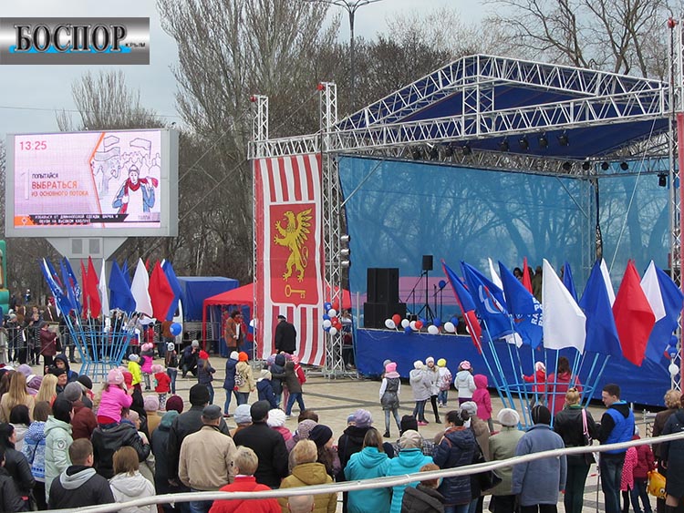 Народные гуляния и праздничный концерт на центральной площади Керчи в честь 3-й годовщины возвращения Крыма в состав Российской Федерации. 18 марта 2017 г. Фото Юлии Юрченко.