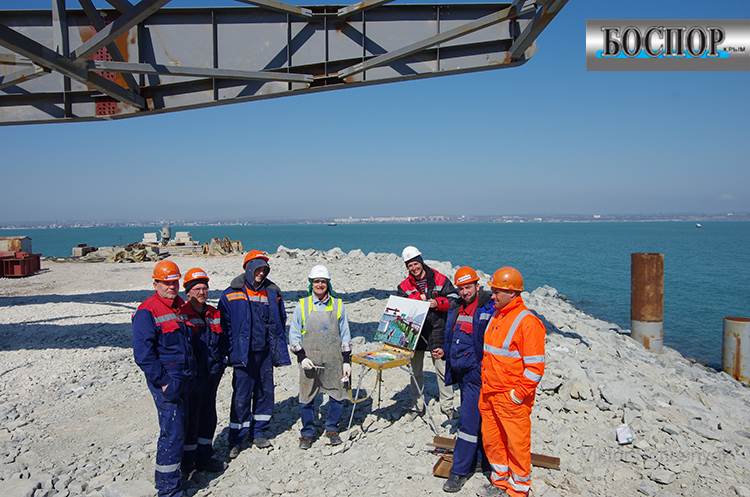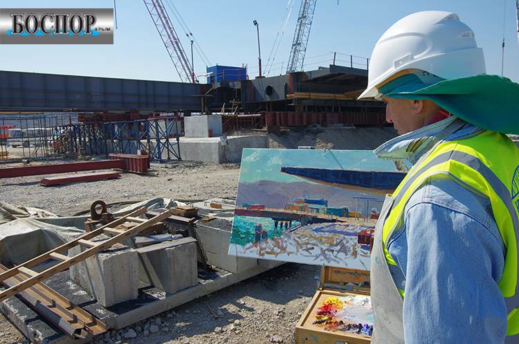 Художники из Керчи, Симферополя и Ялты провели пленэр на площадке строительства моста через Керченский пролив. Фото В. Щесняка, А. Максименко, А. Спольского, П. Шумова.