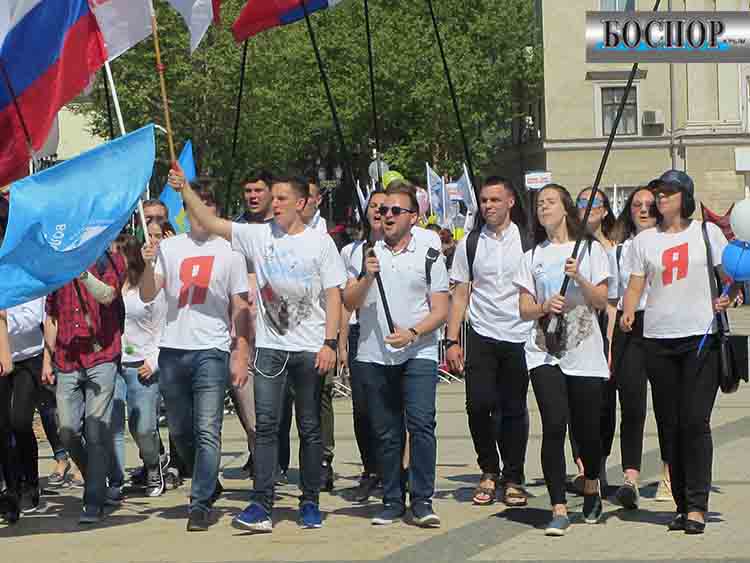 В Керчи отметили День весны и труда праздничной демонстрацией. 1 мая 2018 г. Фото Юлии Юрченко.